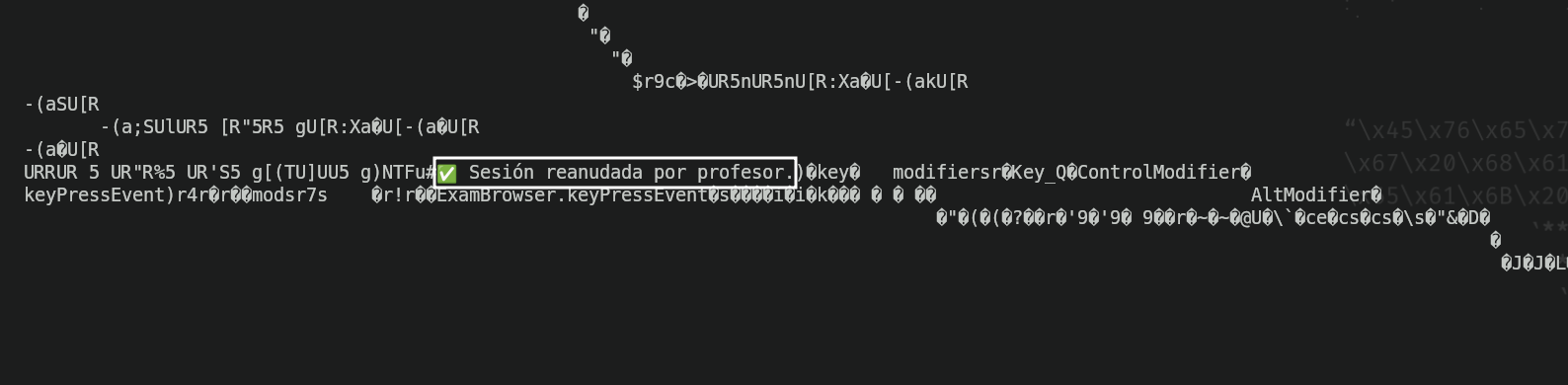 Now all I have to do is search for the previous string I looked at before, and applying programming logic, if there's a message that literally says "Exam session unblocked by the professor", the thing that unlocks the session must be above the message.