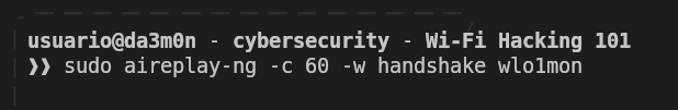 CH 60: That is the channel we're actually gathering info from. Channels in Wi-Fi are used to avoid interferences. Usually the most common Wi-Fi channels are 1, 6 and 11, but there are a lot more. In this case, we're listing and gathering handshakes from Wi-Fi networks in the channel "60".