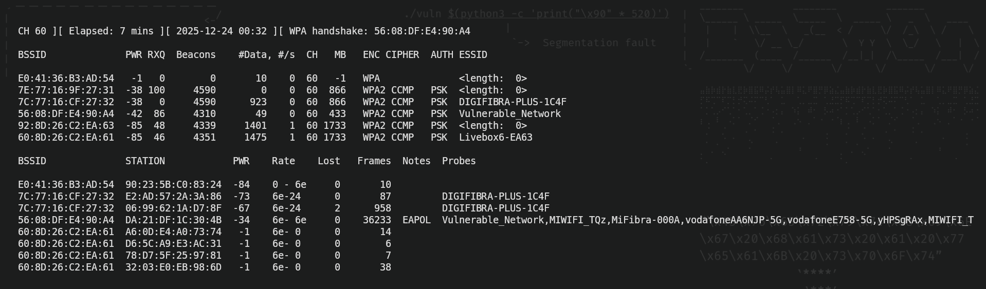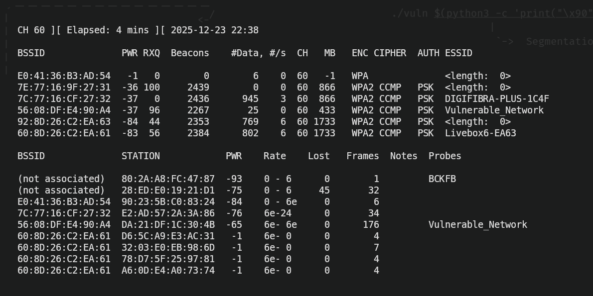 2025-12-23 22:38: This is the time when I started gathering information. In my case, I started gathering handshakes from the networks that communicate through the channel 60 at 22:38 (10:38 PM).